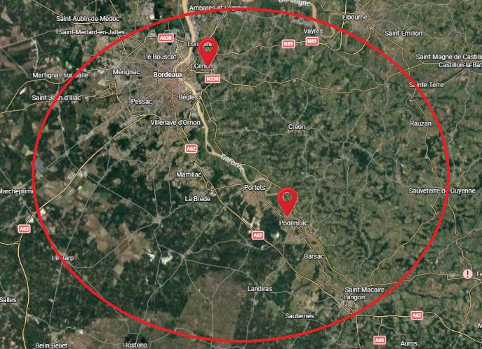 Interventions entre Bordeaux et Podensac dans un rayon d'environ 30Km